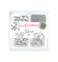 An assortment of 4 boxes of silver sugar decorations to add a touch of elegance and crunch to your biscuits, cakes, cupcakes and other creations. This assortment makes an ideal monochrome decoration to sprinkle on a birthday, the festive season or a special event (birth, christening, communion, wedding).