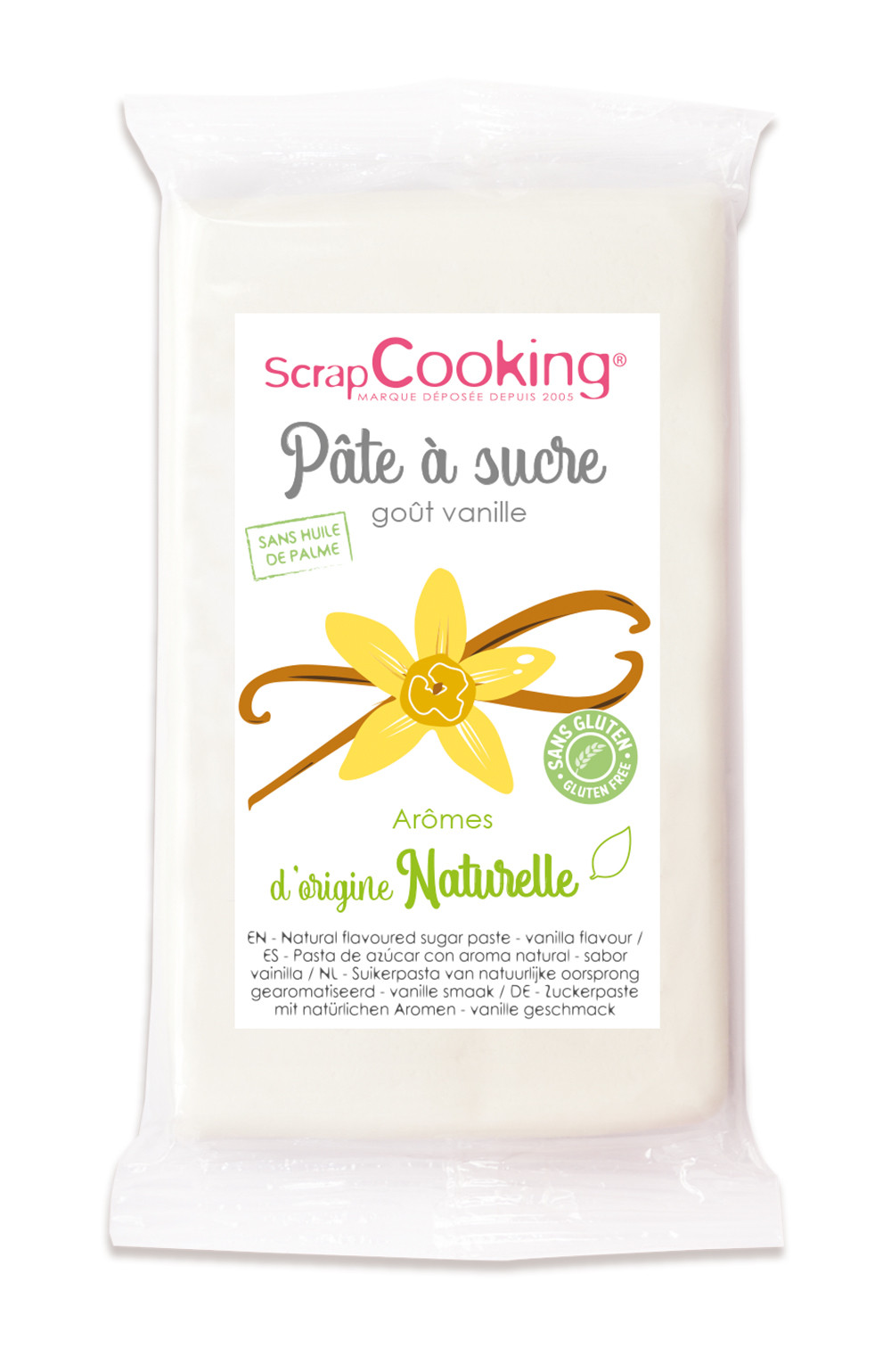 ScrapCooking® propose une nouvelle gamme de pâtes à sucre avec des arômes et des colorants d'origine naturelle. Découvrez cette pâte à sucre blanche sans huile de palme au bon goût de vanille !