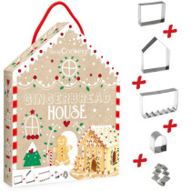- Un kit maison pain d'épices : il contient tous les découpoirs pour réaliser votre maison. Sinon, vous pourrez dessiner vos gabarits sur une feuille, mais attention à bien calculer les dimensions.