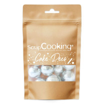 Une fois la bûche démoulée, saupoudrez-là de sucre neige étincelante et décorez-là avec les meringues décors et quelques billes en pâte à sucre blanche recouverte de poudre irisée.