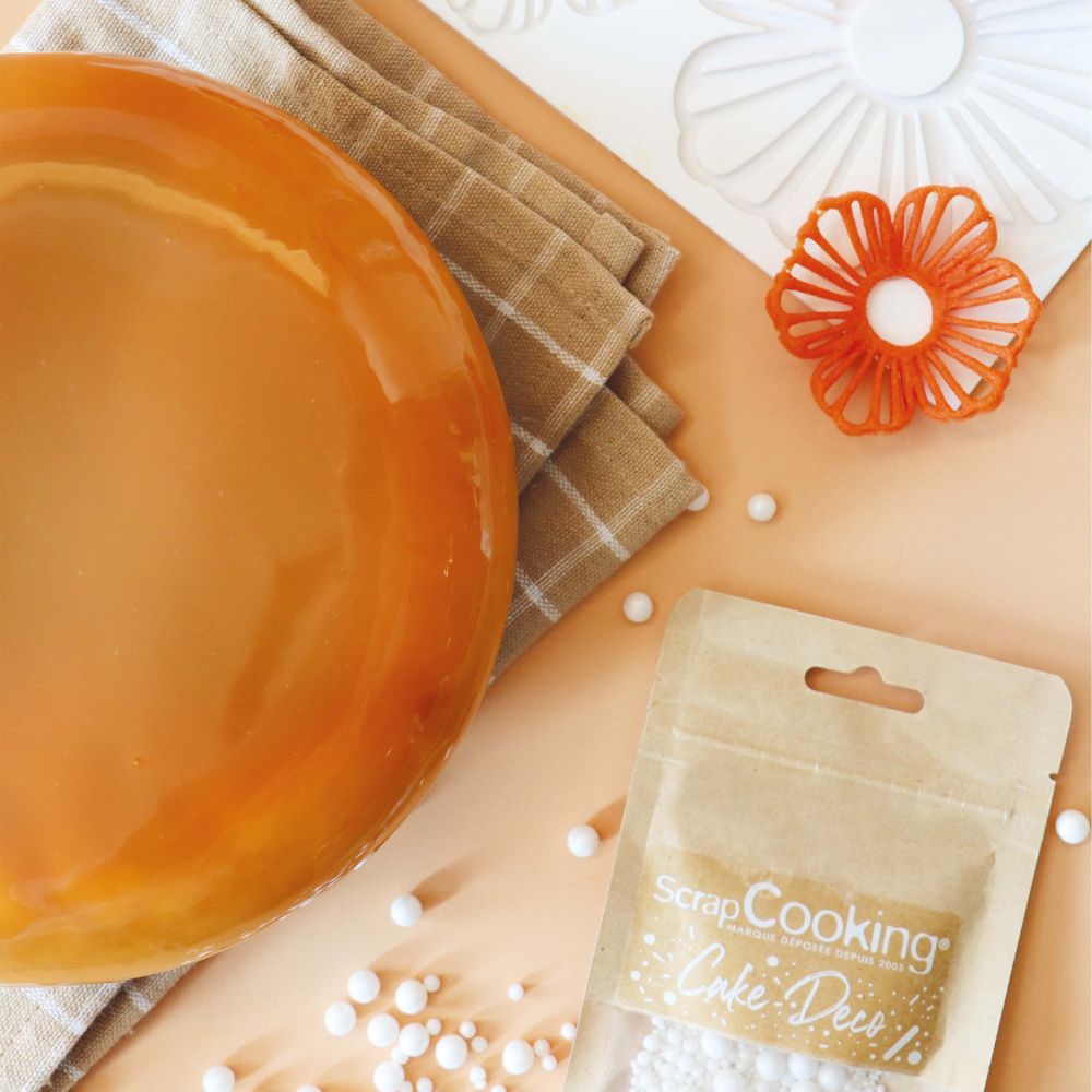 Au moment de servir, disposez les tuiles fleurs puis décorez avec les perles blanches.