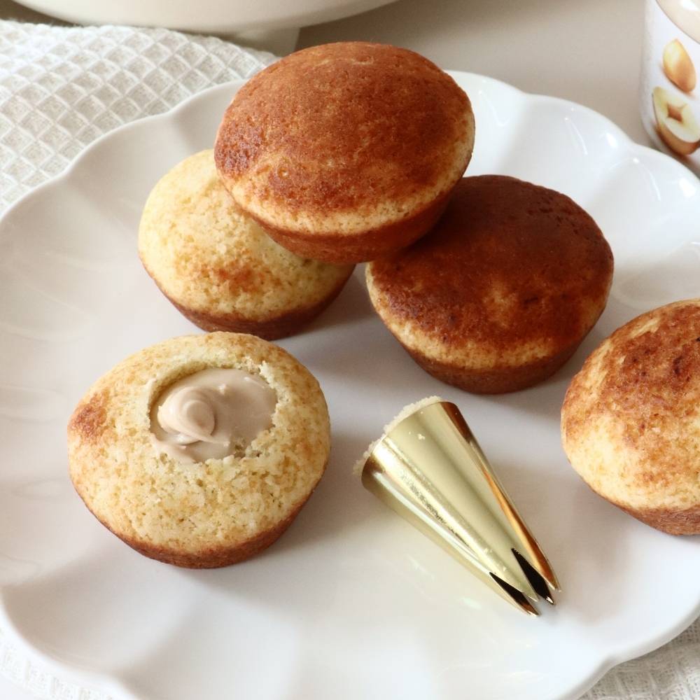 Succombez à la gourmandise avec ces délicieux cupcakes fourrés d’une onctueuse crème bueno à la noisette. Chaque bouchée révèle un cœur fondant irrésistible, sublimé par une chantilly légère et parfumée également à la pâte bueno.