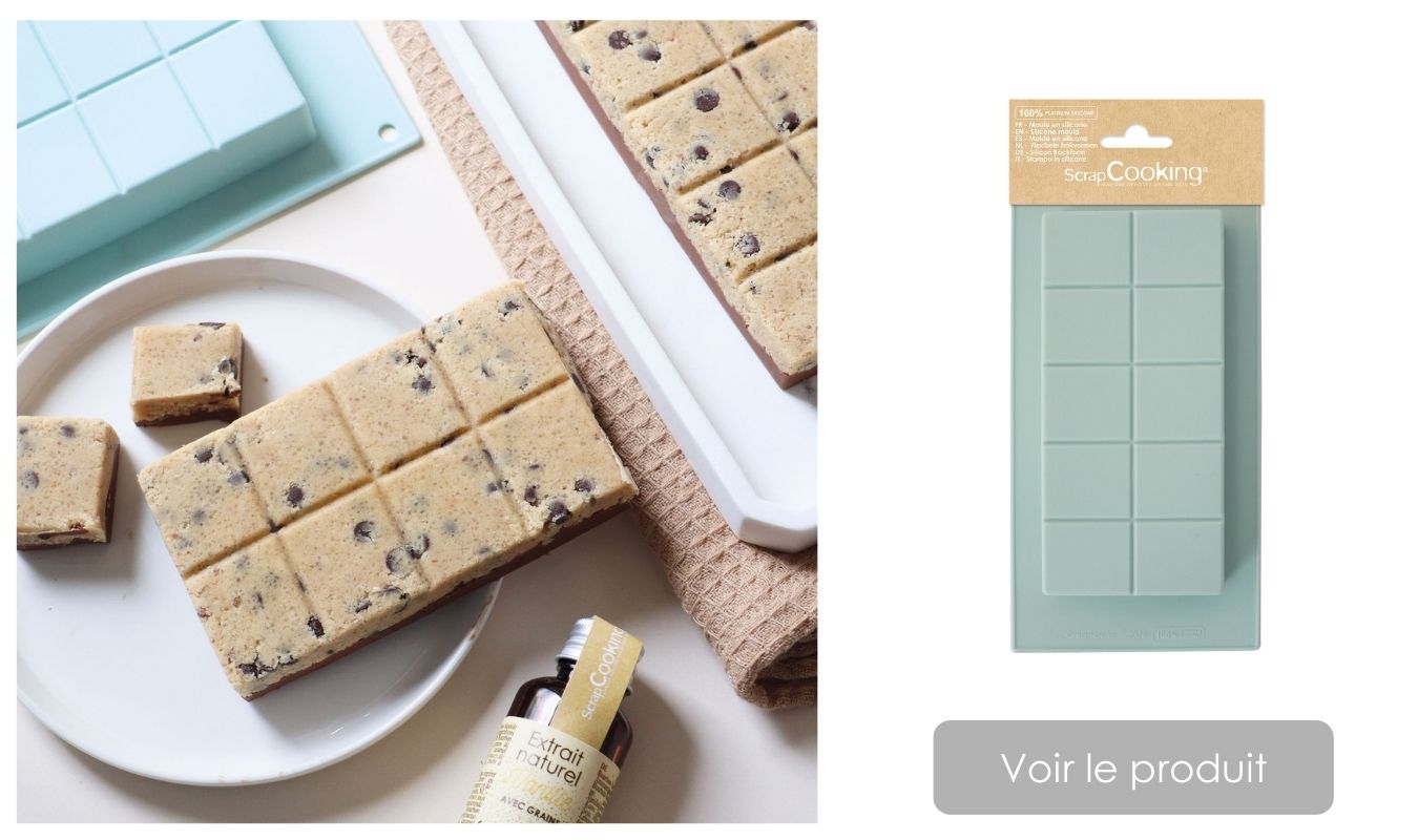 Répartissez la pâte à cookies crue dans le fond du moule tablette.